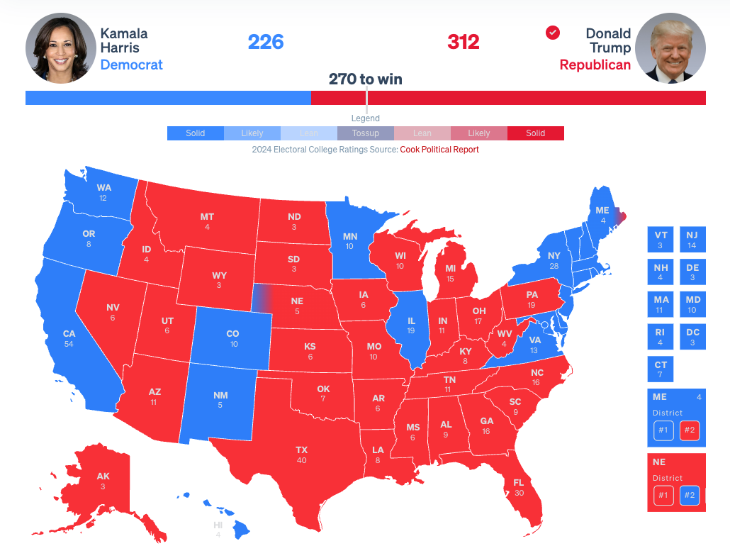 Abortion is a salient issue, though it seemed at times to be the only one she had. And she was not helped by the fact that Trump basically moderated on the issue, purging opposition to abortion from the Republican Party platform and vowing to veto any Congressional attempt at a national abortion ban. In the end it was not enough. Even in Florida, where a referendum to repeal the state’s six-week ban got 57% of the vote (just short of the 60% needed for it to pass) Trump won easily with almost the same percentage.